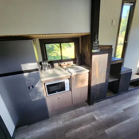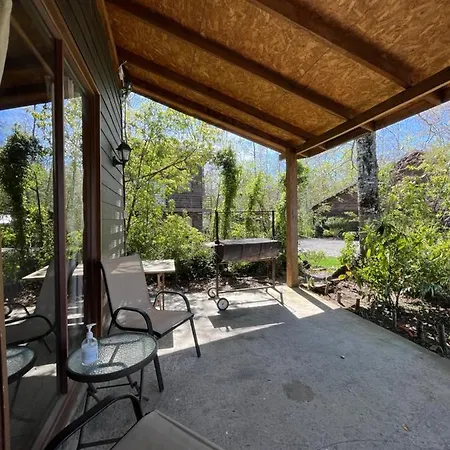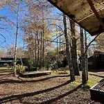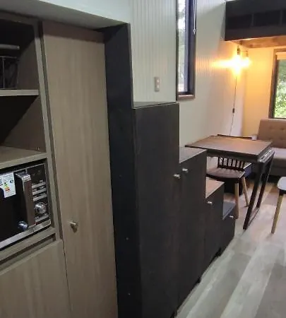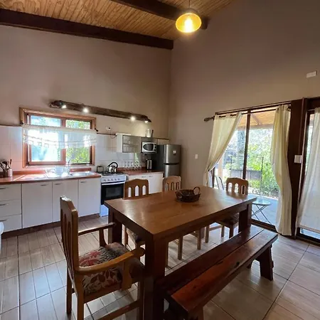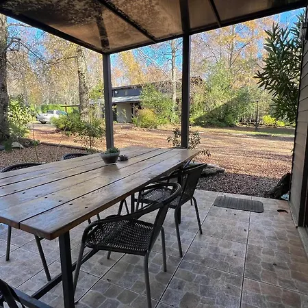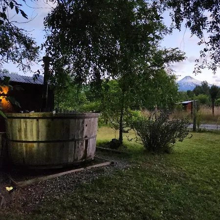 This Pucon accommodation is equipped with a microwave oven, a refrigerator, and a toaster for self-catering in an outdoor dining area.