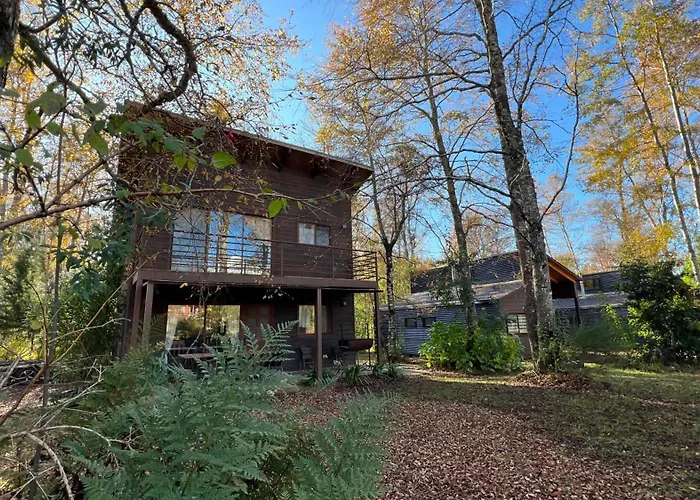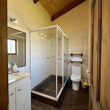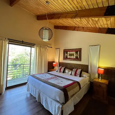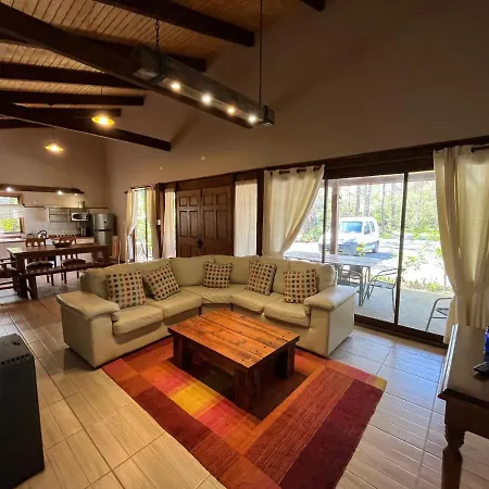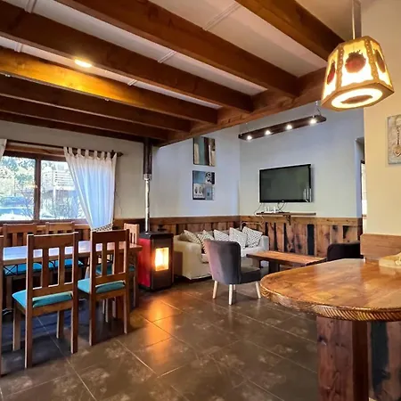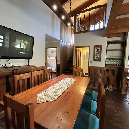 The 7-room Cabanas Alto Bosque Villa is located around 10 minutes' drive from Termas Rio Trancura and provides a Jacuzzi. The villa, situated approximately 25 minutes' walk from Monasterio Santa Clara de Pucon, invites guests to enjoy views of the mountain from a sunny patio with a dining table.