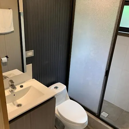 Along with a patio and a sitting area, Cabanas Alto Bosque Villa offers a TV for a more enjoyable stay. Bathroom amenities comprise a separate toilet and a shower, as well as a hair dryer and bath sheets.